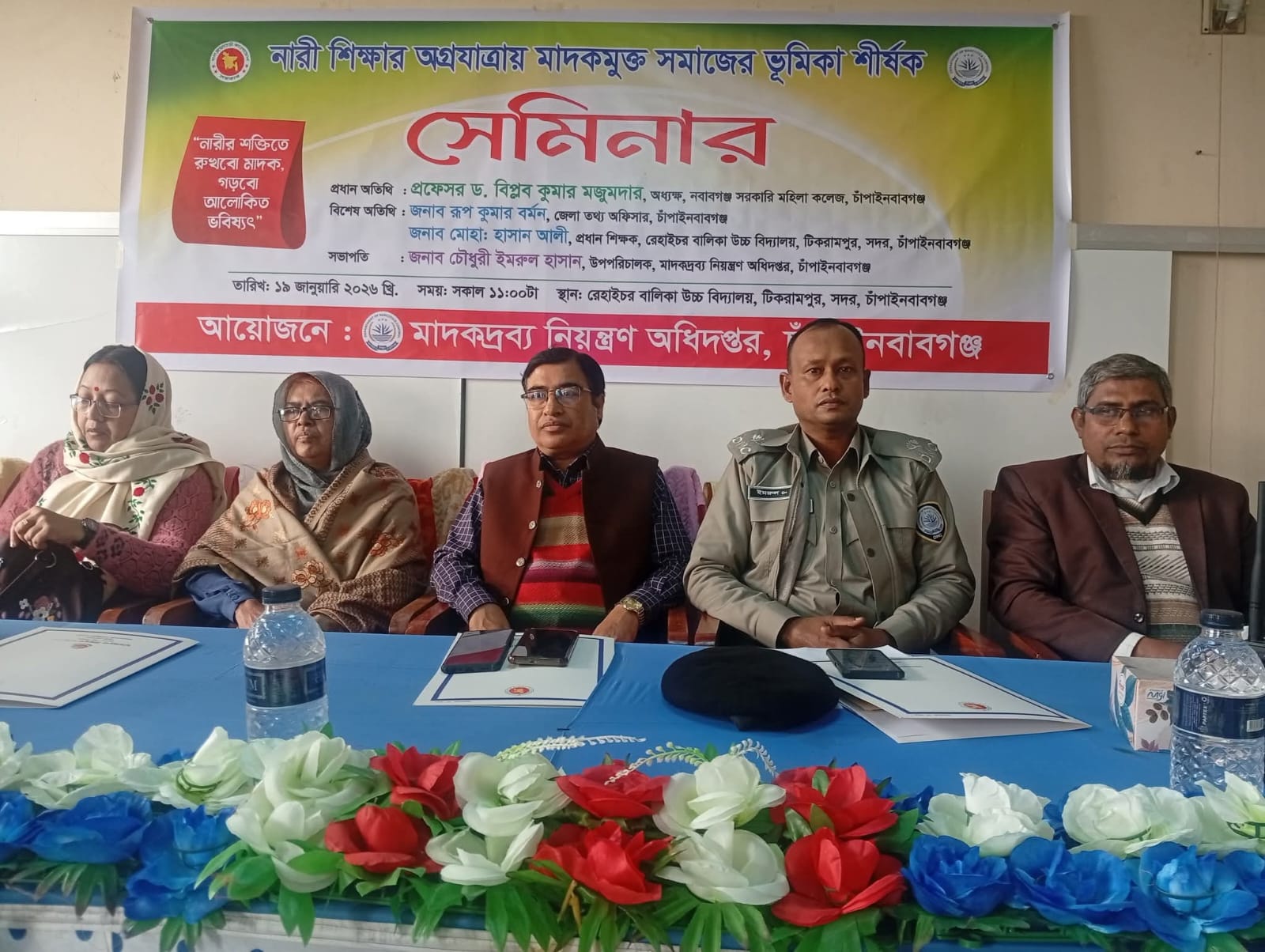 মাদকদ্রব্য নিয়ন্ত্রণ অধিদপ্তর, জেলা কার্যালয়, চাঁপাইনবাবগঞ্জ-এর উদ্যোগে সোমবার (১৯ জানুয়ারি ২০২৬) সকালে সদর উপজেলার রেহাইচর বালিকা উচ্চ বিদ্যালয়ে “নারী শিক্ষার অগ্রযাত্রায় মাদকমুক্ত সমাজের ভূমিকা” শীর্ষক এ সেমিনার আয়োজন করা হয়।
