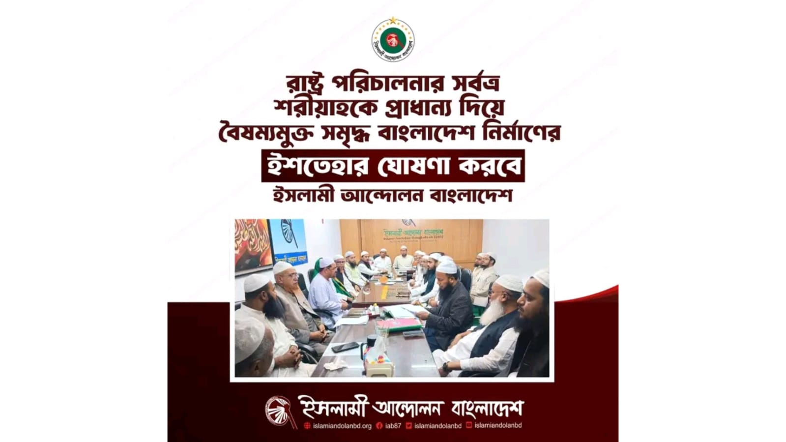 রাষ্ট্র পরিচালনার সর্বত্র শরীয়াহকে প্রাধান্য দিয়ে বৈষম্যমুক্ত সমৃদ্ধ বাংলাদেশ নির্মাণের ইশতেহার ঘোষণা করবে ইসলামী আন্দোলন