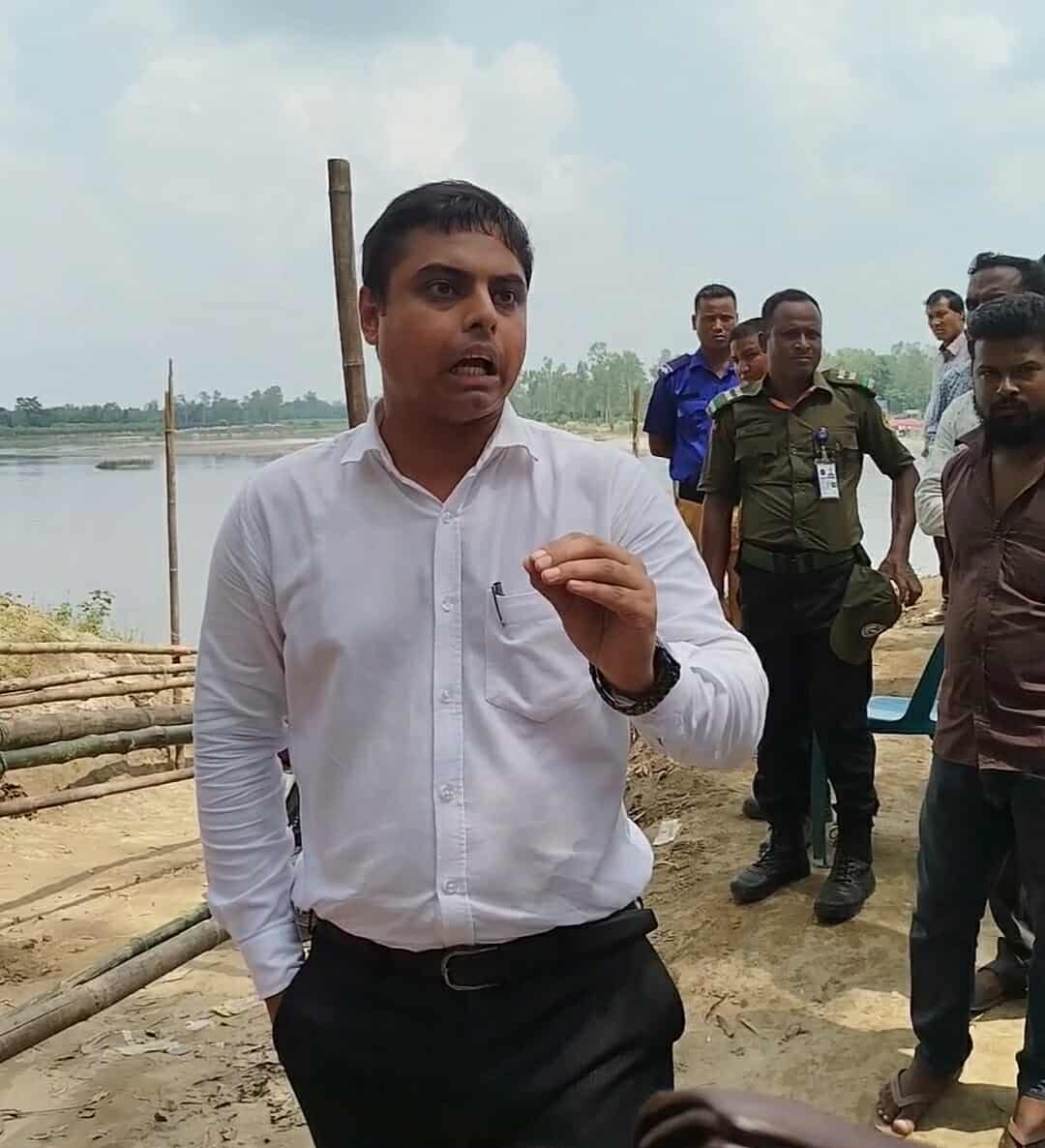 এসময় করতোয়া নদীর ঘাটে কর্তব্যরত ম্যাজিস্ট্রেট মো. তাহমিদুর রহমান সাংবাদিকদের নদী পার হতে বাঁধা দেন। সেই সময়ে নদীতে তিন থেকে চারটি নৌকা চলাচল করছিল এবং নৌকায় মোটরসাইকেলও পারাপার হচ্ছিল। কিন্তু সাংবাদিকরা নৌকায় উঠতে চাইলে তিনি বাঁধা দিয়ে বলেন মোটরসাইকেল নেওয়া যাবে না। সাংবাদিকরা প্রশ্ন তোলেন—“যখন অন্যরা মোটরসাইকেল পার হচ্ছে, আমরা কেন নিউজের কাজে যেতে পারব না?” এতে তিনি ক্ষুব্ধ হয়ে সাংবাদিকদের উদ্দেশে বলেন, “আপনি আল জাজিরা, বিবিসি বাংলা আর আর্ন্তজাতিক সাংবাদিক হন আর যেই সাংবাদিক হন, তাতে আমার যায় আসে না। যেতে পারবেন না।” তাঁর এমন আচরণের সাংবাদিকরা ক্যামরায় রেকর্ড করলেই কিছুক্ষণ পরেই তিনি সাংবাদিকদের উদ্দেশে আরও অশালীনভাবে বলেন, “আপনারা সন্ত্রাসী।” শতাধিক লোকের সামনে সাংবাদিকদের এভাবে অপমানিত করার ঘটনায় স্থানীয় গণমাধ্যমকর্মীদের মধ্যে তীব্র ক্ষোভ দেখা দিয়েছে।