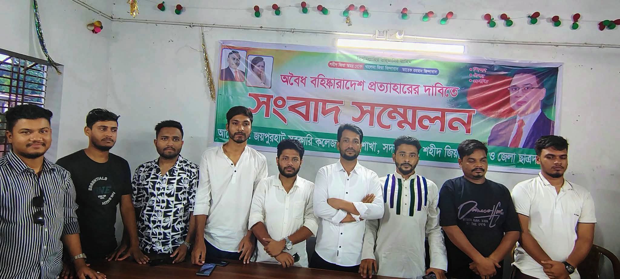 সংবাদ সম্মেলনে বক্তব্য রাখেন জয়পুরহাট সরকারি কলেজ শাখা ছাত্রদলের সদস্য সচিব পিয়াস আহম্মেদ পৃথিবী ও জয়পুরহাট শহর ছাত্রদলের সদস্য সচিব হাসানুল বান্না হাসান। এ সময় বহিস্কৃত অন্য নেতারাও উপস্থিত ছিলেন।