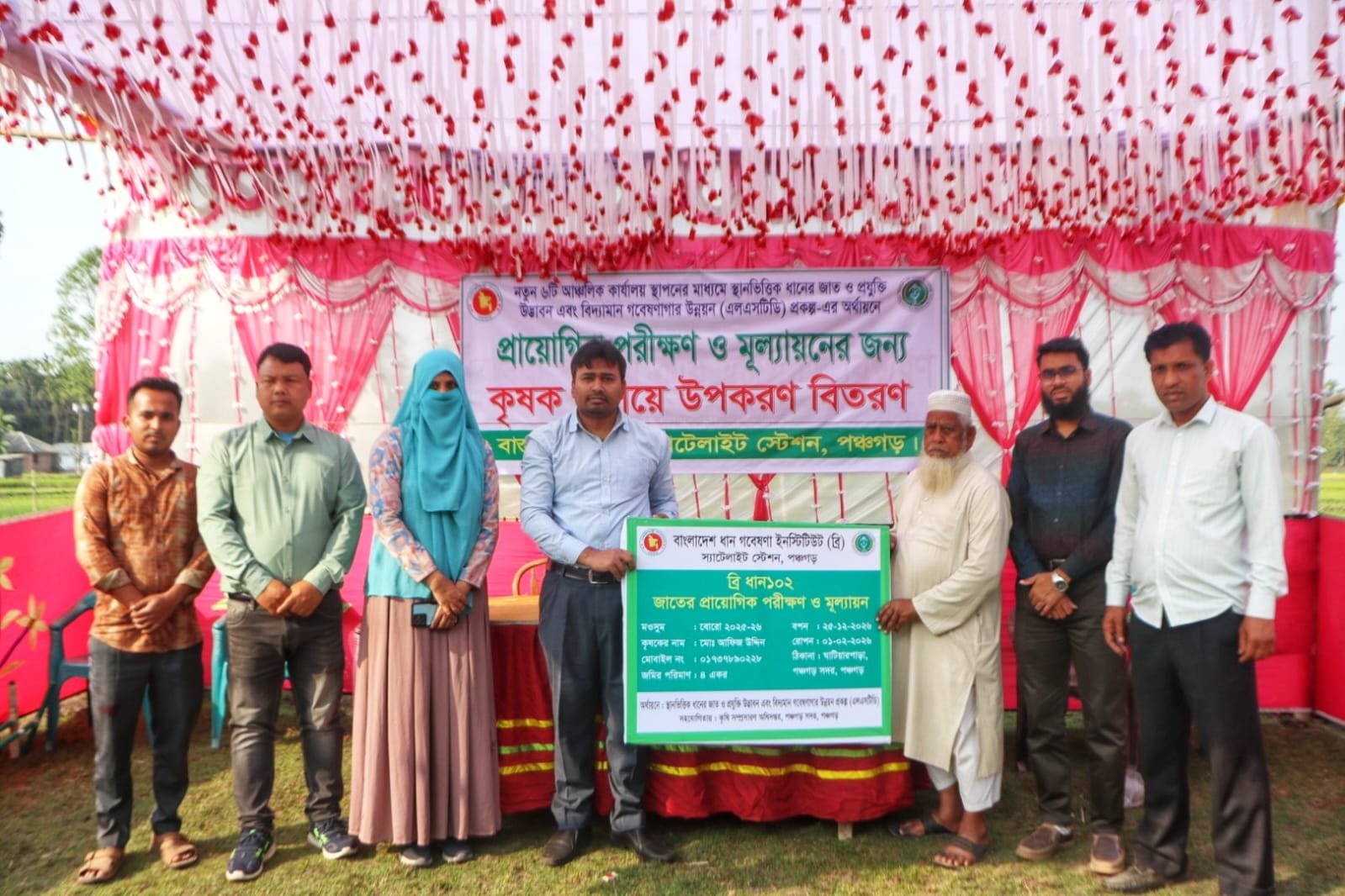 স্থানভিত্তিক ধানের জাত ও প্রযুক্তি উদ্ভাবন এবং বিদ্যমান গবেষণাগার উন্নয়ন ( এলএসটিডি) প্রকল্পের অর্থায়নে এবং বাংলাদেশ ধান গবেষণা ইনস্টিটিউট (ব্রি) স্যাটেলাইট স্টেশন, পঞ্চগড়ের তত্ত্বাবধানে কৃষক পর্যায়ে ব্রি উদ্ভাবিত উন্নত ধান জাতের প্রায়োগিক পরীক্ষণ ও মূল্যায়ন কার্যক্রমের অংশ হিসেবে কৃষি উপকরণ ও যন্ত্র বিতরণ করা হয়েছে।