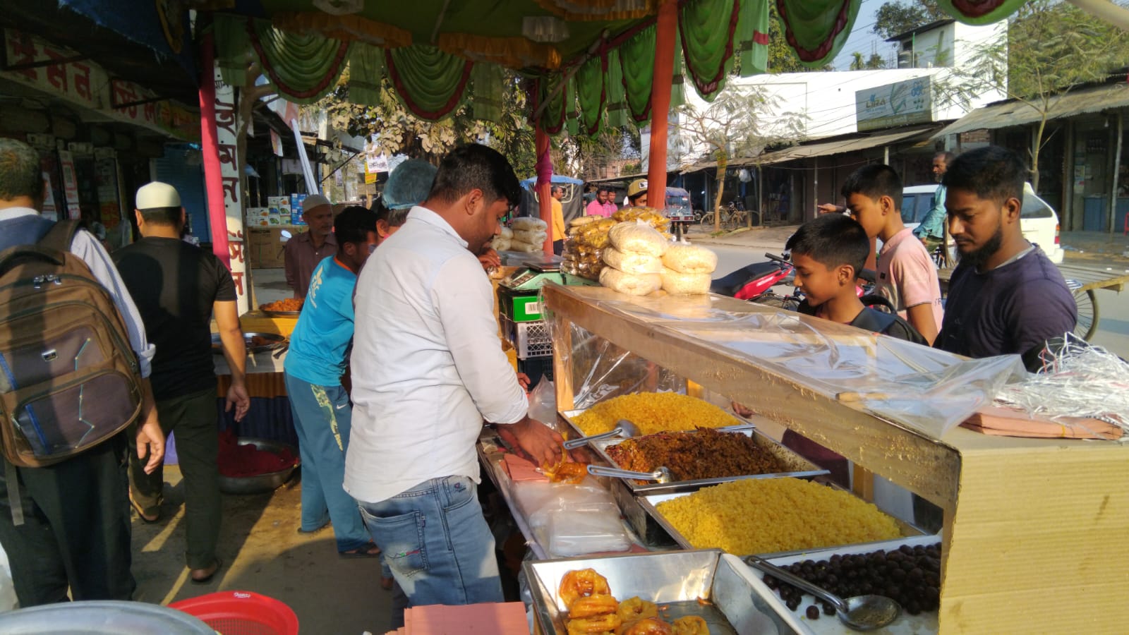 ঠাকুরগাঁওয়ের পীরগঞ্জে রমজান এলেই সন্ধ্যার আগমুহূর্ত বদলে যায় অন্য এক ছন্দে। বিকেল গড়াতেই উপজেলার প্রধান সড়ক, বাজারের মোড় আর অলিগলি ভরে ওঠে ইফতারের পসরা নিয়ে বসা দোকানিদের হাঁকডাকে। সূর্য পশ্চিমে ঢলে পড়ার সঙ্গে সঙ্গে বাতাসে ভেসে আসে বেগুনি, পেঁয়াজু, ছোলা, জিলাপির গন্ধ যেন রোজাদারদের জন্য এক নীরব আমন্ত্রণ।