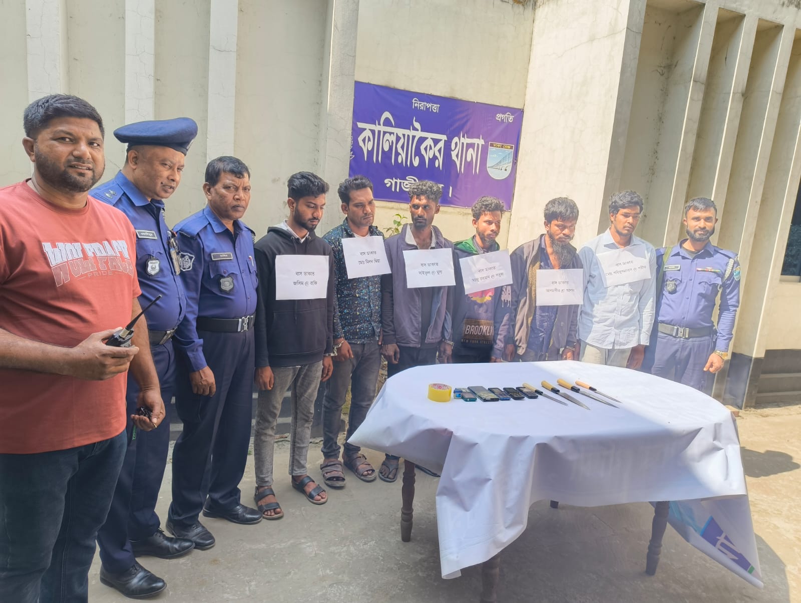 গাজীপুরের কালিয়াকৈরে যাত্রীবাহী গণপরিবহনে ডাকাতির প্রস্তুতিকালে দেশীয় অস্ত্রসহ ছয়জনকে গ্রেফতার করেছে থানা পুলিশ।