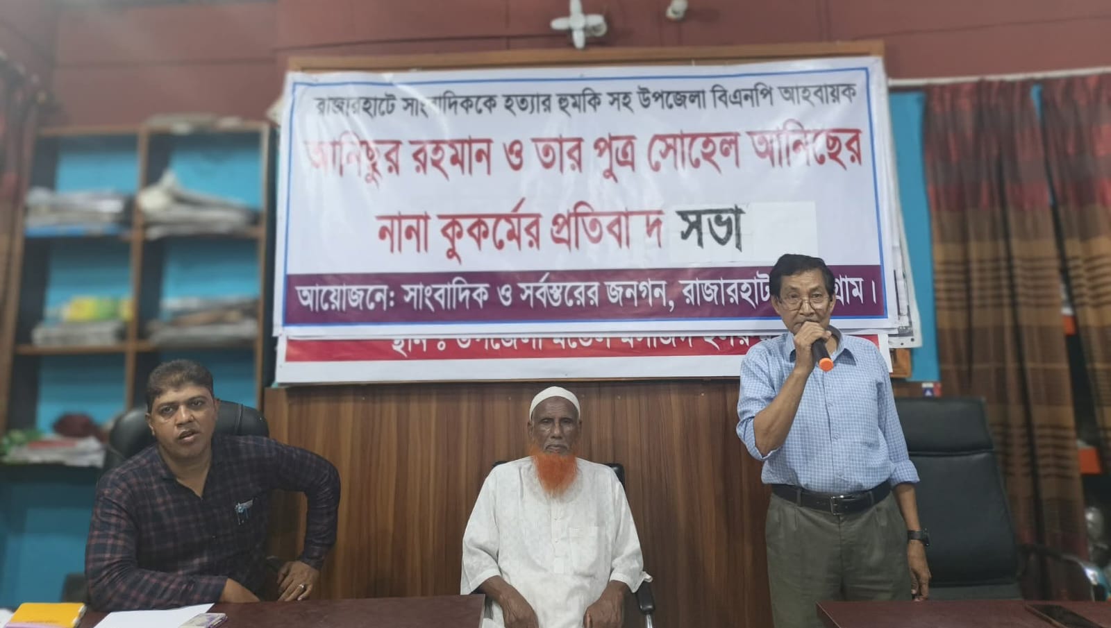 মঙ্গলবার (২৩ সেপ্টেম্বর) বিকেলে রাজারহাট প্রেসক্লাবে প্রতিবাদ সভায় বক্তব্য দেন, অবসরপ্রাপ্ত সহকারি অধ্যাপক জহুরুল ইসলাম, শ্রমিক কল্যাণ ফেডারেশন নেতা রুবেল মিয়া, বৈষম্য বিরোধী ছাত্র আন্দোলনের নেতা আরিফুল ইসলাম, রাজারহাট প্রেসক্লাব সভাপতি সরকার অরুণ যদু, সাধারণ সম্পাদক ও সমকাল প্রতিনিধি আসাদুজ্জামান আসাদ সহ অনেকে।
