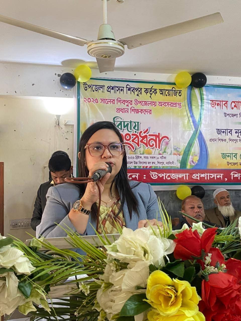 নরসিংদীর শিবপুর উপজেলার মাধ্যমিক পর্যায়ে ২০২৫ সালে অবসরপ্রাপ্ত প্রধান শিক্ষকদের বিদায়ী সংবর্ধনা দেওয়া হয়েছে। শনিবার (১০ জানুয়ারি) দুপুরে উপজেলা প্রশাসনের আয়োজনে শিবপুর সরকারি পাইলট মডেল উচ্চ বিদ্যালয় হল রুমে এই সংবর্ধনা অনুষ্ঠিত হয়। সংবর্ধনা অনুষ্ঠানে প্রধান অতিথি হিসেবে উপস্থিত ছিলেন উপজেলা নির্বাহী অফিসার মোছাঃ ফারজানা ইয়াসমিন। শিবপুর উপজেলা মাধ্যমিক শিক্ষা অফিসার আলতাফ হোসেনের সভাপতিত্বে অনুষ্ঠানে অন্যান্যদের মধ্যে বক্তব্য রাখেন শিবপুর সরকারি পাইলট মডেল উচ্চ বিদ্যালয়ের প্রধান শিক্ষক নূর উদ্দিন মোঃ আলমগীর,বাড়ৈগাঁও মাদ্রাসার অধ্যক্ষ হাবিবুর রহমান, সাধারচর উচ্চ বিদ্যালয়ের প্রধান শিক্ষক আবদুল বাছেত, ব্রাহ্মন্নদী উচ্চ বিদ্যালয়ের প্রধান শিক্ষক মোঃ কামরুল হাসান
