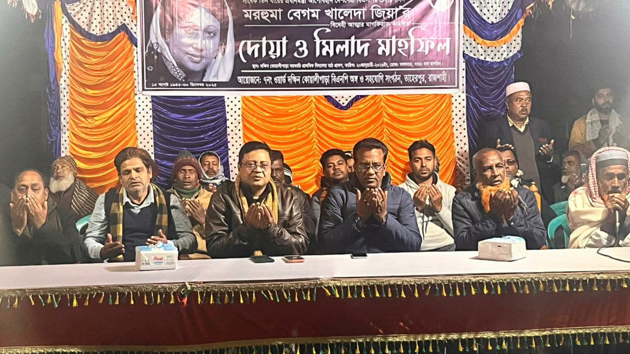 সাবেক তিনবারে প্রধানমন্ত্রী মরহুমা বেগম খালেদা জিয়ার বিদেহী আত্মার মাগফেরাত কামনা’য় দোয়া ও মিলাদ মাহফিল অনুষ্ঠিত হয়েছে।