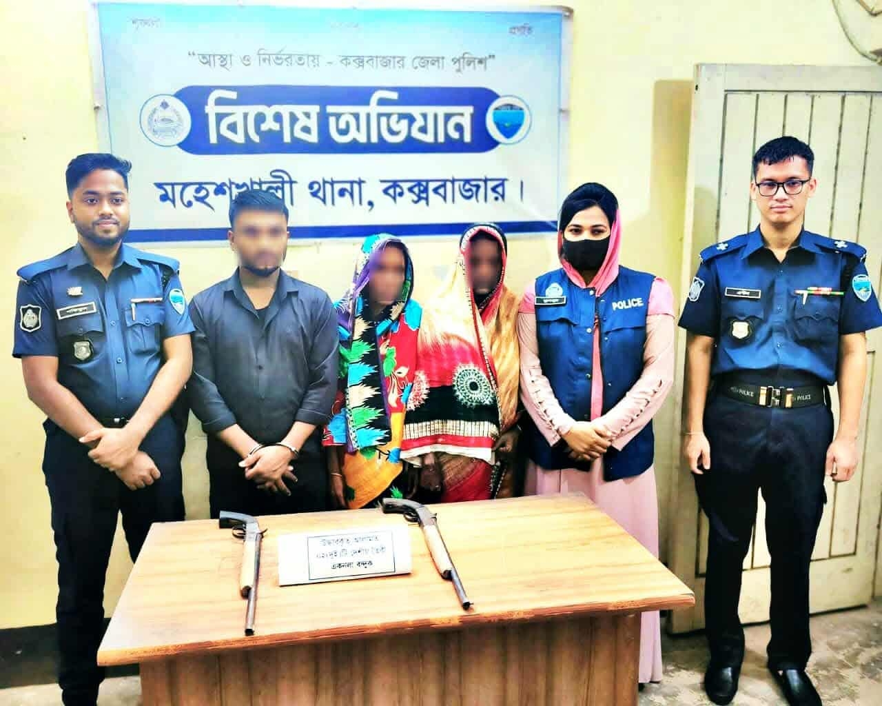জানা যায়, গোপন সংবাদের ভিত্তিতে মহেশখালী থানার অফিসার ইনচার্জ (ওসি) মঞ্জরুল হকের নেতৃত্বে ২ সেপ্টেম্বর (মঙ্গলবার) সন্ধ্যা ৭.৩০ টায় মহেশখালী পৌরসভাস্থ জেটিঘাট এলাকায় বিশেষ অভিযান পরিচালনা করে পুলিশ। অভিযানে দেশীয় তৈরি দু’টি একনলা বন্দুকসহ তিনজনকে আটক করা হয়, যাদের মধ্যে একজন পুরুষ ও দুইজন নারী রয়েছেন।