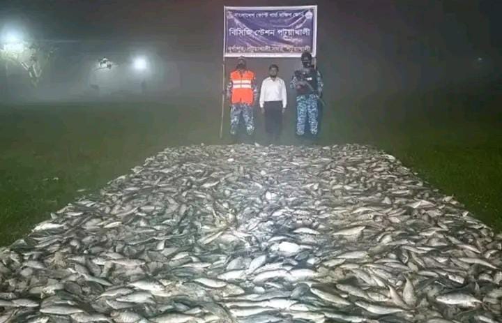 পটুয়াখালীতে কোস্ট গার্ড ও মৎস্য অধিদপ্তরের যৌথ অভিযানে প্রায় ১২ লক্ষ টাকা মূল্যের বিপুল পরিমাণ জাটকা জব্দ