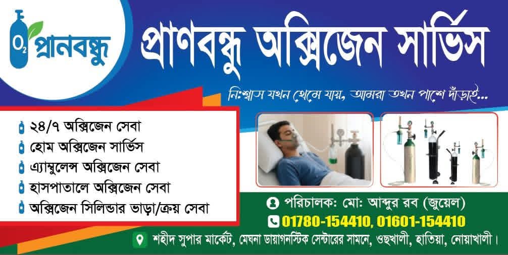 হাতিয়ায় ২৪/৭ অক্সিজেন সেবা ও হোম ডেলিভারি চালু করল ‘প্রাণবন্ধু অক্সিজেন সার্ভিস’