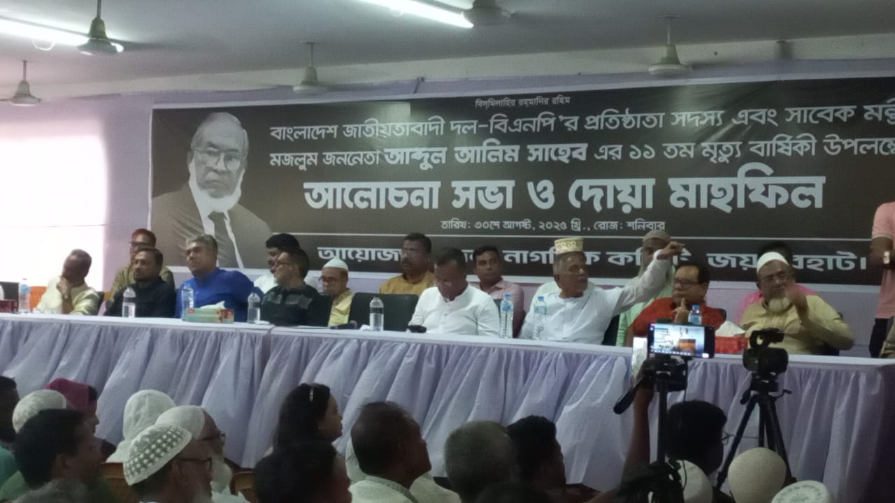 বাংলাদেশ জাতীয়তাবাদী দল-বিএনপির প্রতিষ্ঠাতা সদস্য ও সাবেক মন্ত্রী মরহুম আব্দুল আলিমের ১১ তম মৃত্যু বার্ষিকী উপলক্ষে জয়পুরহাটে আলোচনা সভা ও দোয়া মাহফিল অনুষ্ঠিত হয়েছে। শনিবার (৩০ আগস্ট) বিকেলে শহরের ধনমন্ডি এলাকায় পৌর কমাউনিটি সেন্টারে এ সভার আয়োজন করা হয়।