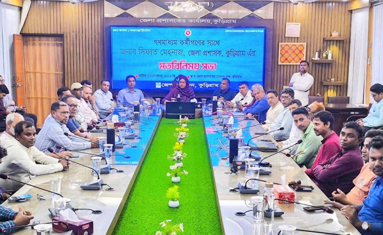 কুড়িগ্রাম জেলার গণমাধ্যম কর্মীদের সঙ্গে মতবিনিময় করেছেন কুড়িগ্রামের নবাগত জেলা প্রশাসক সিফাত মেহনাজ।